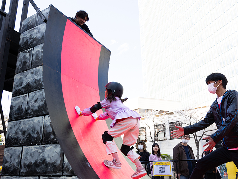 SASUKEの1stステージ最終エリア「そり立つ壁」のキッズ版が赤坂サカスに登場。SASUKEジュニアCUPでも話題となったこの壁を君は登りきることができるか?皆様の挑戦、お待ちしています。