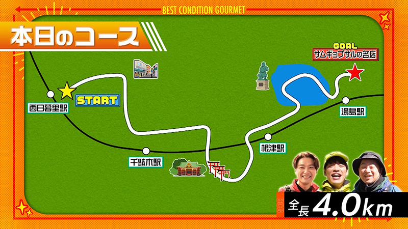 今回、川島さん、井上芳雄さん、レイザーラモンRGさんがウォーキングするのは…
