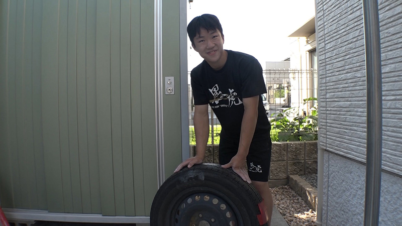 山田勝己さんにおねだりしてタイヤを貰いました」