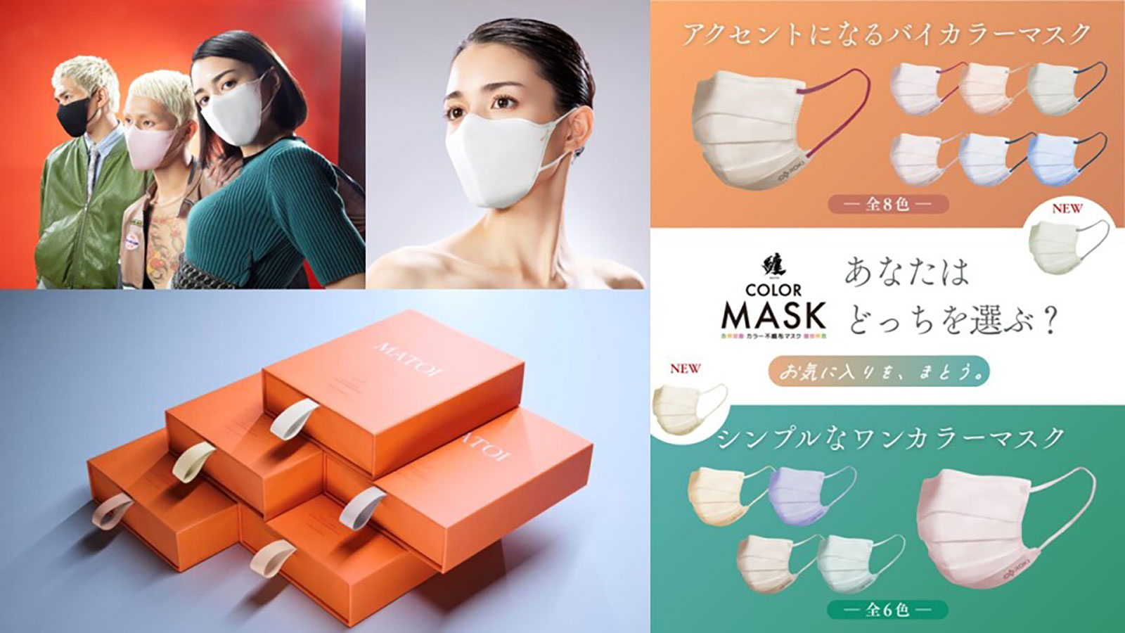 「MATOI TONE UP MASK アソートボックス(3枚入)と纏(まとい)カラーマスク バイカラー(7枚入)」のセットを50名様にプレゼントいたします。