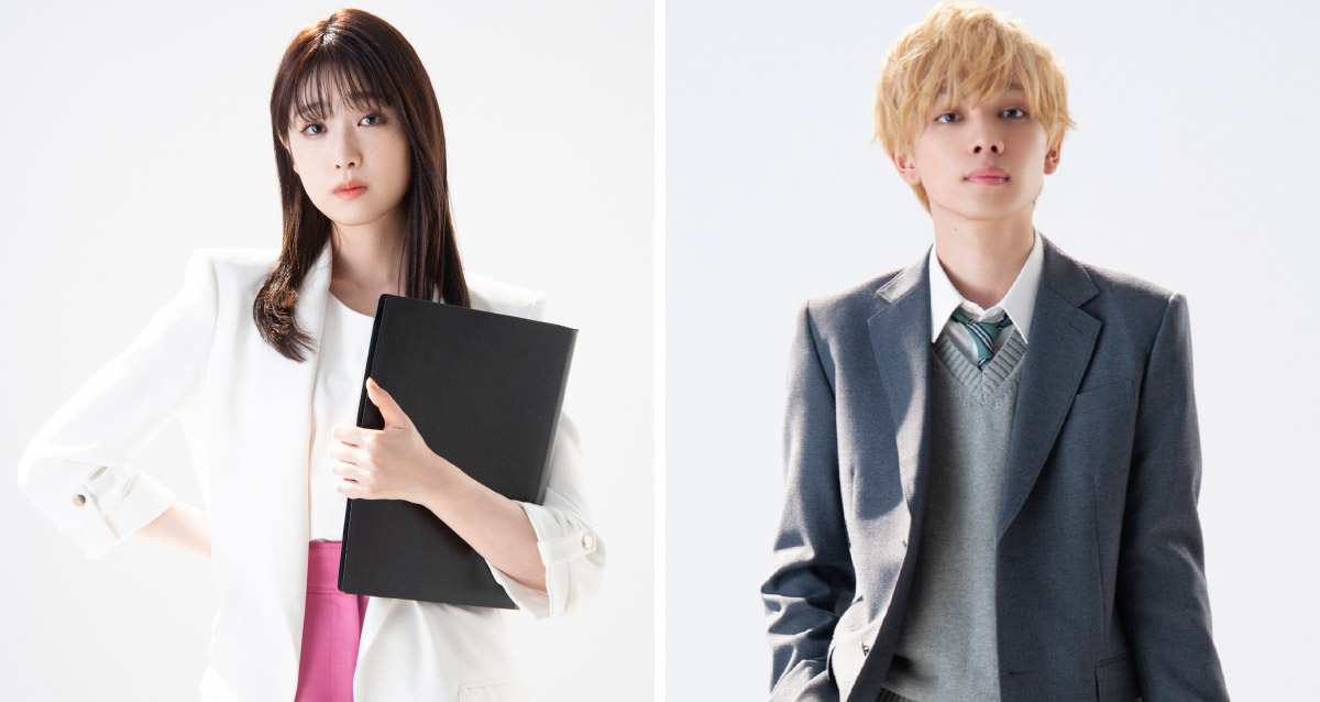 さらに、髙橋演じる田中、宮世演じる村井の役衣装ビジュアルを初公開! 髙橋は教師・田中の“鉄仮面”を表現しつつ、村井からの愛の告白に戸惑う様子を見せている。一方、宮世は本作の役作りのために染めたという金髪姿で、これまでの印象をガラッと変え、村井の謎めいた雰囲気をまとっている。原作の雰囲気にぐっと近付いた2人のビジュアルとなった。