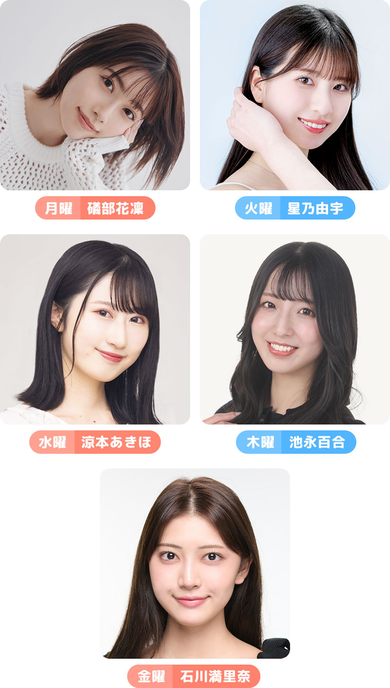 曜日担当の5人の健康ナビゲーターと