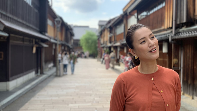 そのほど近く、ひがし茶屋街は古い町並みが残る人気の観光地。格式あるお茶屋やお洒落な町家カフェ、伝統工芸品を扱う店などが立ち並ぶ。町を散策し、九谷焼の窯を見学。また、名産品の金箔を使った金箔プリンを味わう。芸姑さんの元を訪ねしばし踊りの稽古を受けると、日舞の経験がある遼河さんは見事な舞いを披露。さらには連日行列ができるほどの新名物“のどぐろ釜飯”をいただいた。ほかに、美しい伝統工芸品の加賀友禅、加賀てまりに触れ、郷土料理では治部煮と加賀野菜の天ぷらを味わう。料理や工芸品、建物まで鮮やかな色合いに満ちた金沢。粋な伝統文化を五感で楽しむ“じょんのび旅”。