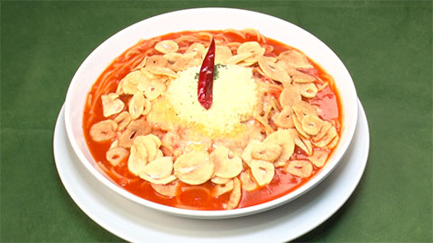 赤唐トマトソース フライガーリック乗せ 1427円