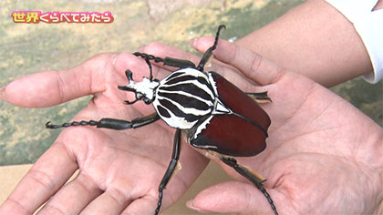 ⇒体調約10cm、体重約100g。ゴライアスの仲間でアフリカに生息する虫の中で最大級