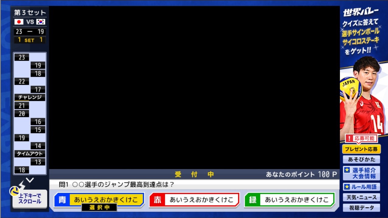 - 一部機種、または、ご視聴の状態によっては、正解数や獲得ポイントなどプレゼント応募に関わる情報をテレビに保存できない場合があります。