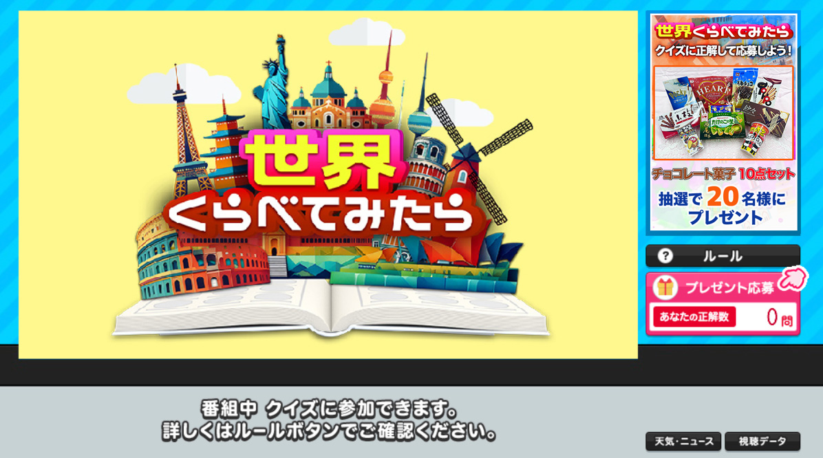 - 一部機種、または、ご視聴の状態によっては、クイズに参加できない場合があります。