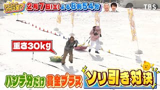 ドケチ春日vsゲレンデ客!ハンデ分だけ賞金が増える重さ30キロのソリ引き対決★大好評!クイズ王伊沢と人気芸能人が60秒で多く答えたら賞金UPのクイズに挑戦