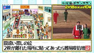 200m離れた2枚の絵を見比べる"長距離間違い探し"などに芸人コンビ4組が挑む